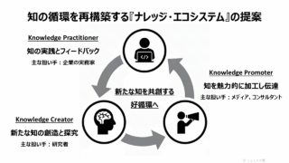 総論 知の循環を再構築する『ナレッジ・エコシステム』の提案 知の分断を解消し、社会の閉塞感を打破する「ナレッジ・エコシステム」を提案。クリエイター(研究者)、プロモーター、プラクティショナー(実務家)が連携し、フィクションではなく真実に基づく知識循環を再構築するための構造と条件を解説します。 2025.09.30 社会総論
