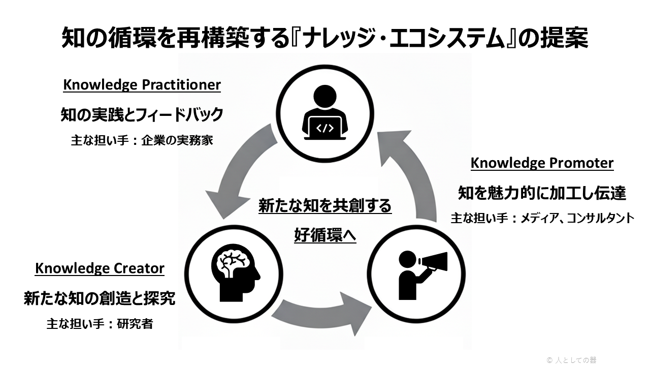 そこで、今回の記事では、この分断を解消し、知の循環を再構築するためのフレームワークとして、「ナレッジ・エコシステム」を提案します。