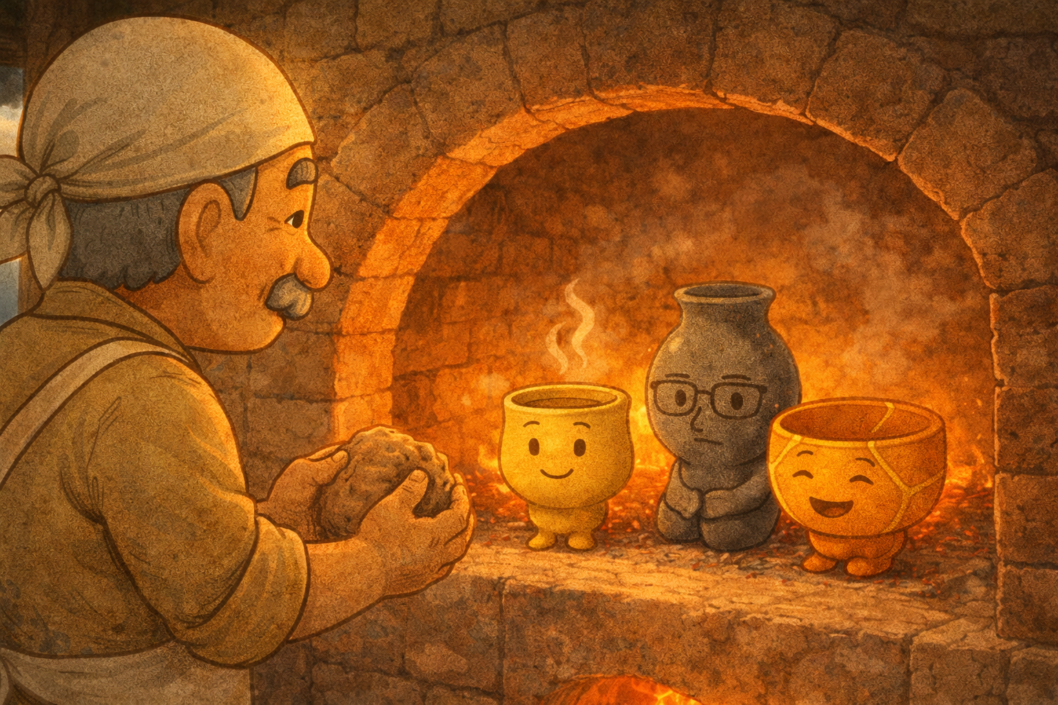 陶じいは静かにうなずき、三つの器を同じ窯に入れた。