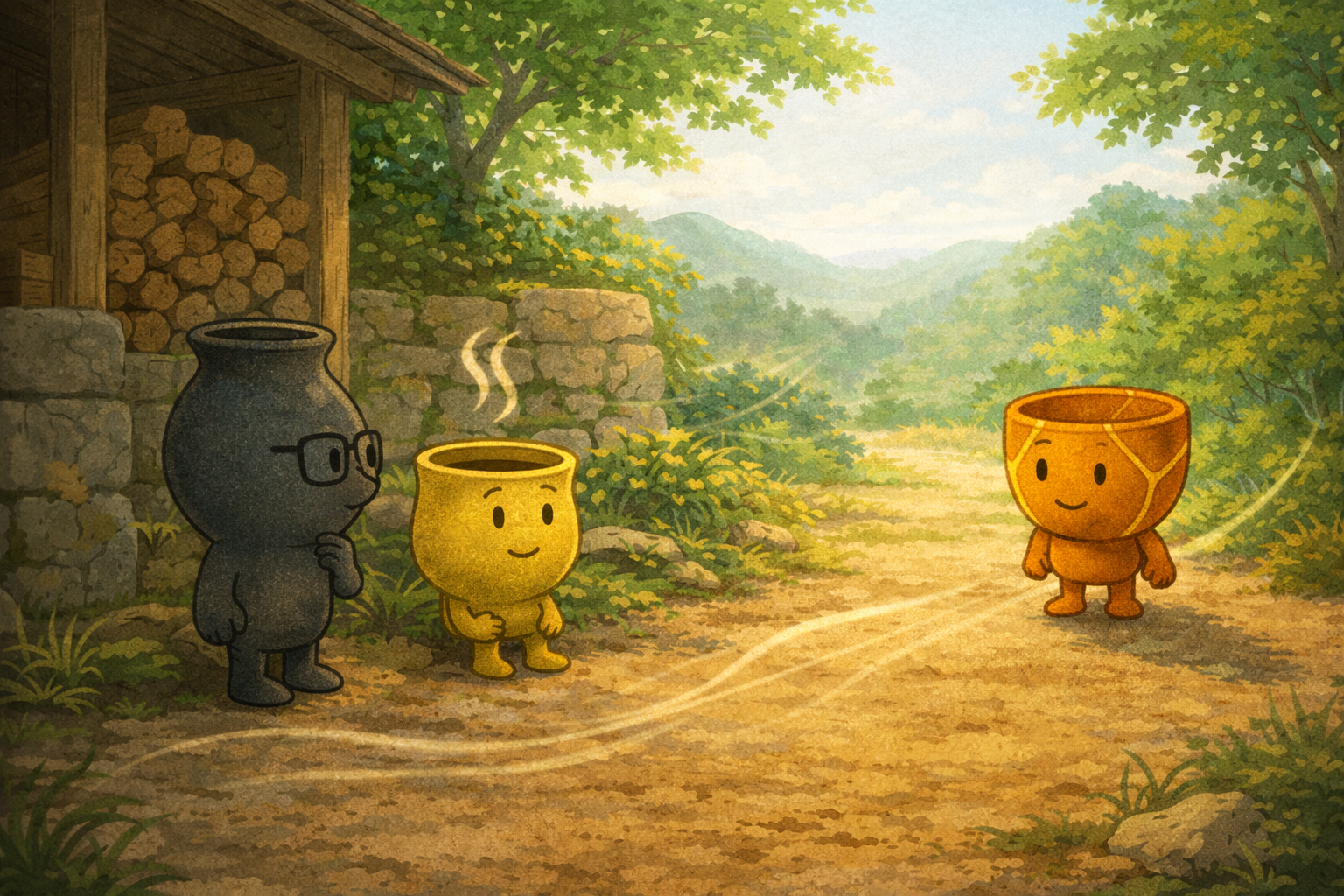 ゆのみんは、陶房の裏にぽつんと座り、湯気を少しずつためては吐き出していた。