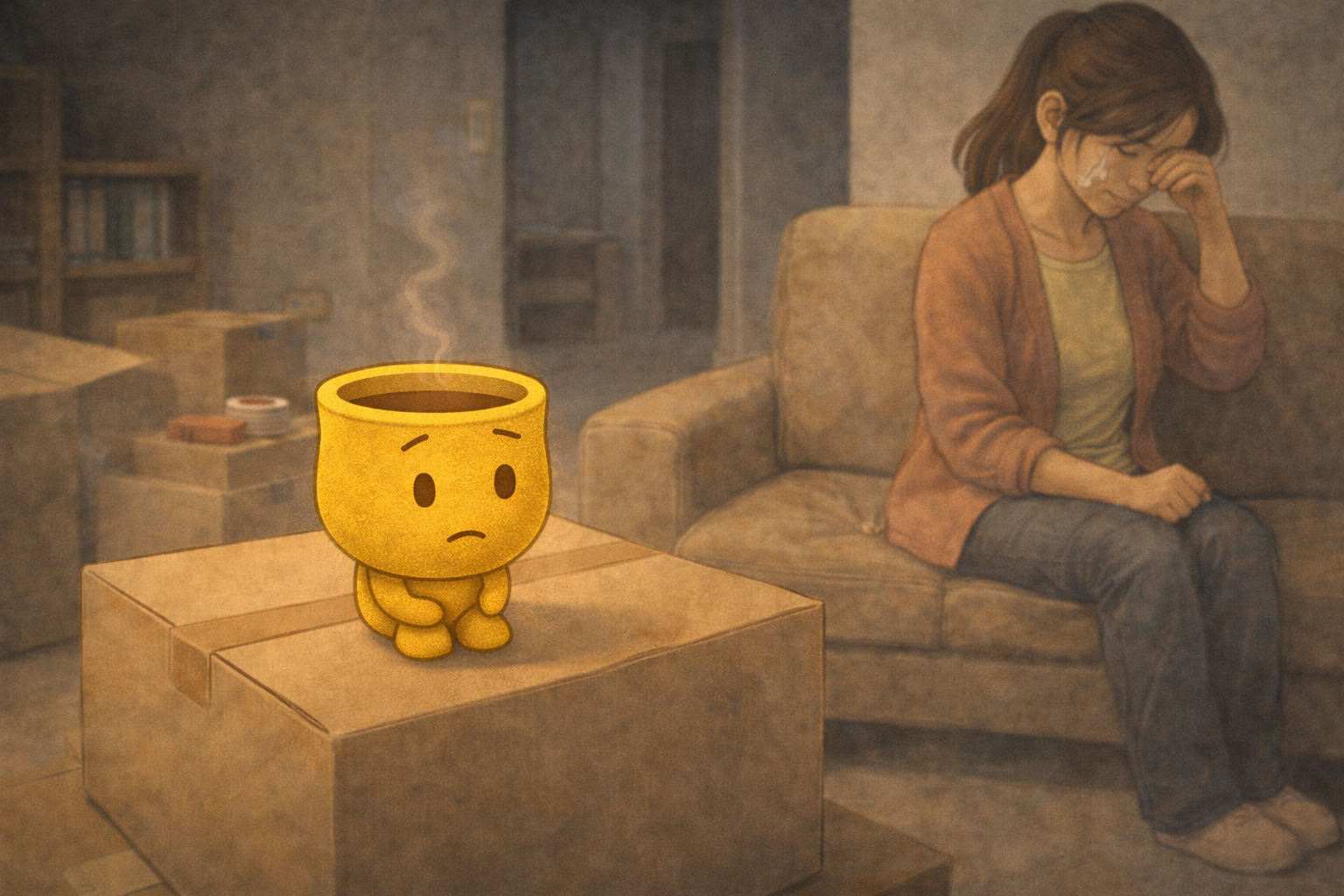 ゆのみんの湯気が、その涙に触れてかすかに揺れた。