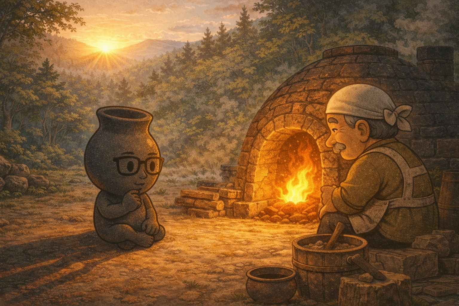 陶じいは窯の前に腰を下ろし、火の揺らぎをじっと見つめた。