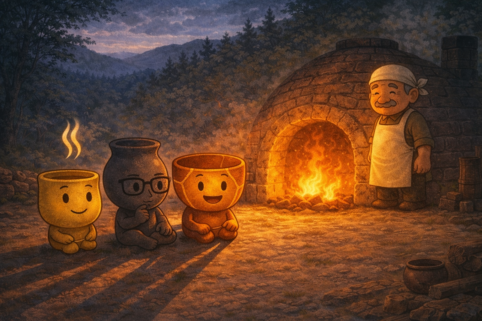 つぼるんの陶肌が、深い呼吸のように静かに温まっていった。