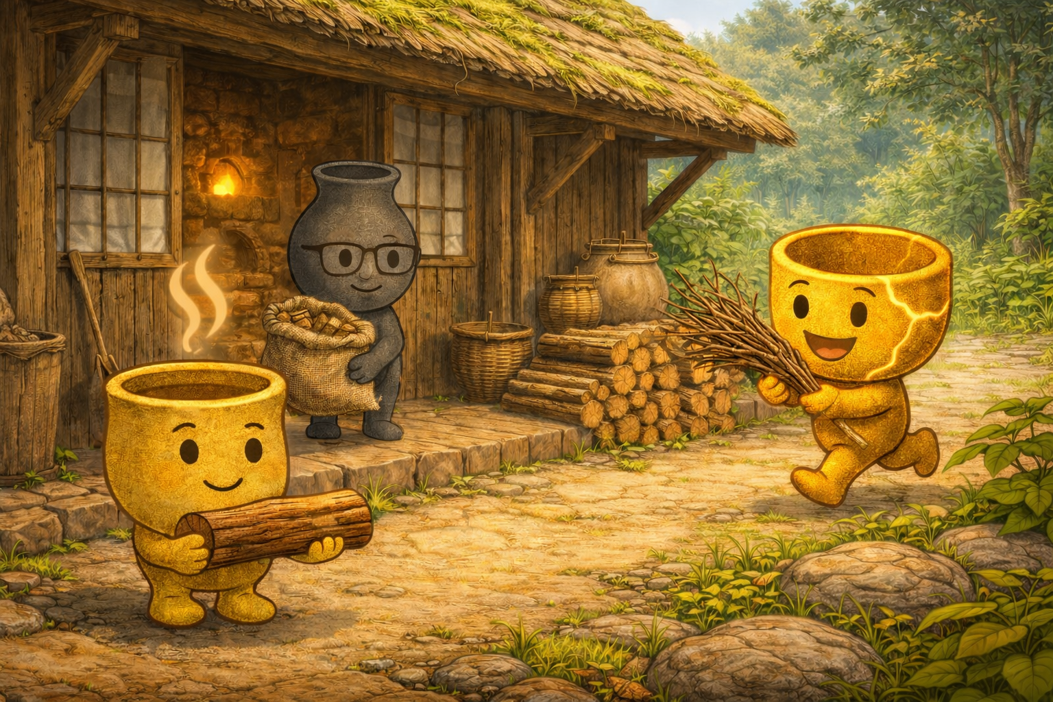 つぼるんは袋を抱え、大切に窯の前へ戻った。