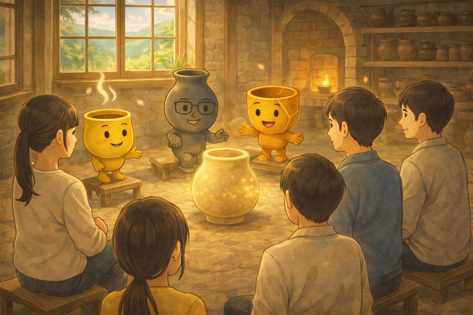 教室の終わりごろ、名のない器が静かに光を放った。