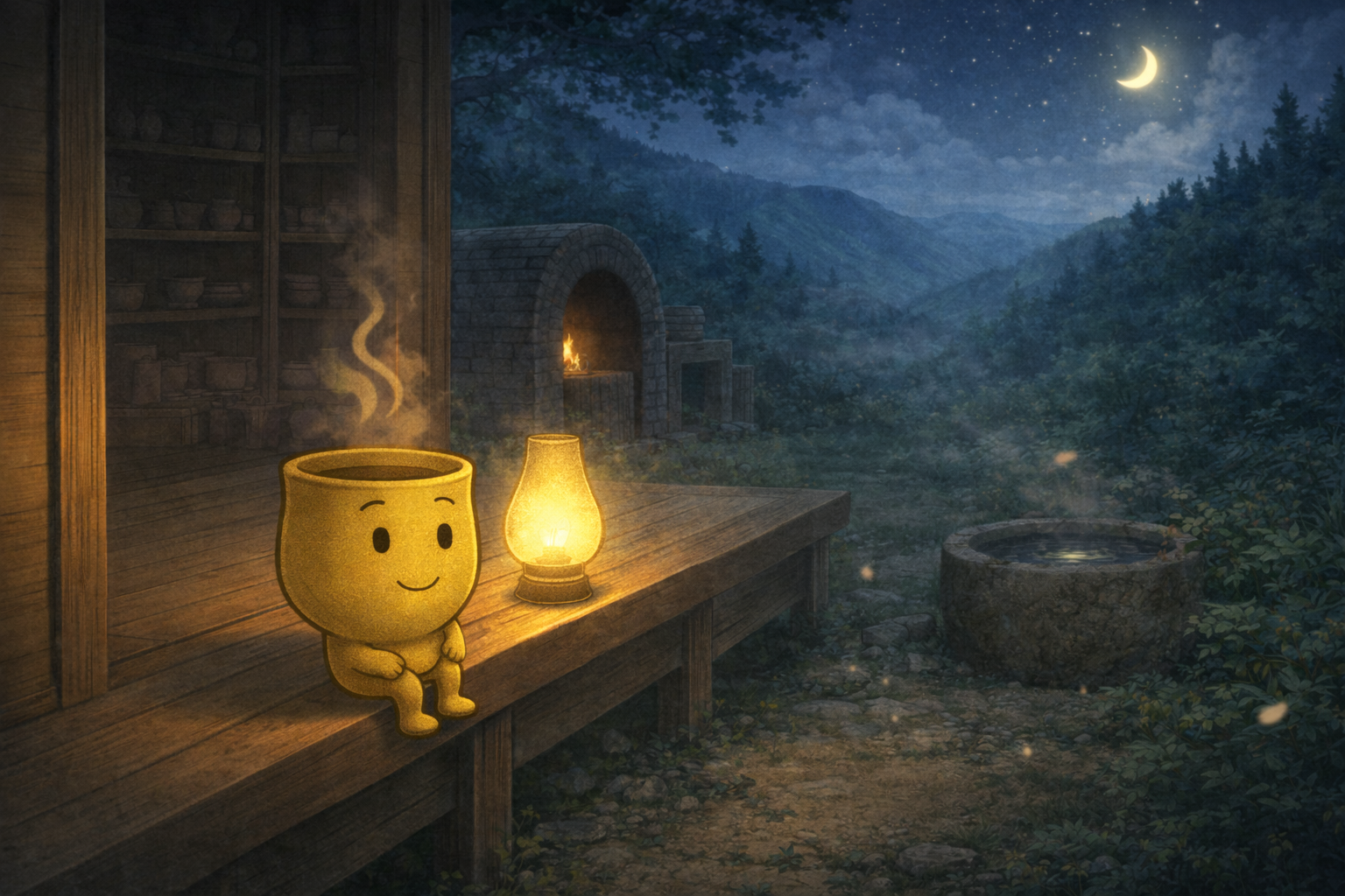 静かな夜の中で、ゆのみんの湯気は、ひときわやさしい光を帯びて立ちのぼっていった。